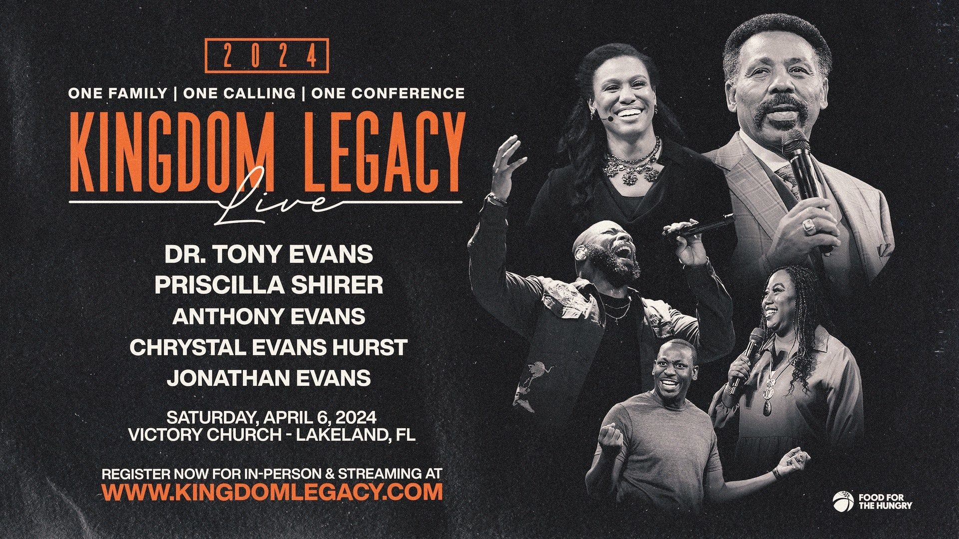 Victory is excited to welcome bestselling author, pastor, and legendary teacher Dr. Tony Evans, along with NY Times bestselling author, speaker, and actress Priscilla Shirer, worship leader and songwriter Anthony Evans, and authors Chrystal Evans Hurst and Jonathan Evans, for KINGDOM LEGACY LIVE, an unforgettable one-day conference happening Saturday, April 6 at 9 AM.