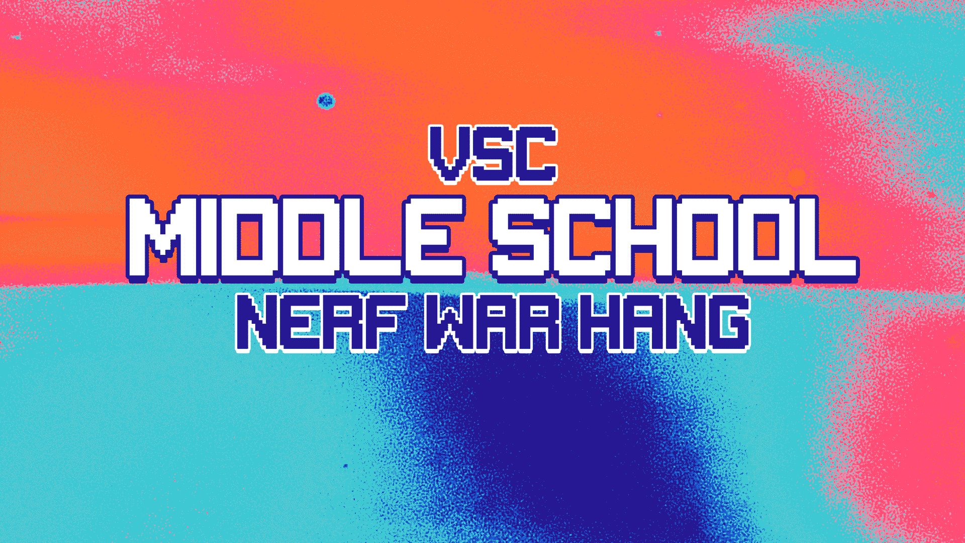 All middle-school students are invited to a Nerf War Hang on Friday, September 9, from 5:30 - 8:30 PM in the Family Life Center at Victory's North Campus. Food is provided, and there is no cost to attend.