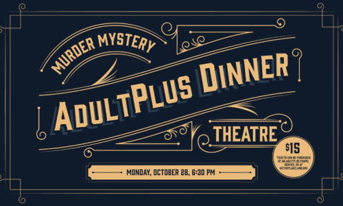 For those 60 years of age and older, AdultPlus invites you to one of the year’s best annual events! Register today to attend the 2024 Dinner and a Mystery on Monday, October 28, at 6:30 PM, featuring a delicious catered buffet and a hilarious live-action mystery stage show - complete with crowd interaction and fun surprises - all for only $15.