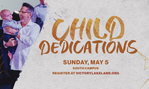 If you have recently welcomed a new baby into your home or have older children who have never been dedicated, register today for the upcoming Child Dedication service on Sunday, May 5, at Victory's South Lakeland Campus.