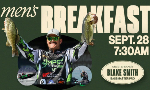 Men of Victory, register today for the next Men's Breakfast happening Saturday, September 28, at 7:30 AM! For just $10, you'll enjoy a full southern breakfast, a chance to connect to other men, and hear from Blake Smith, Bass Master Elite Pro Fisherman!
