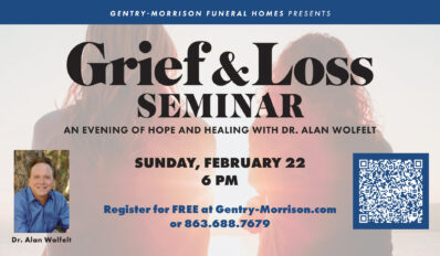 If you lost a loved one or need help navigating the emotions and grief associated with being a caregiver, Victory Church and Gentry-Morrison present "Hope & Healing," a free community seminar featuring Dr. Alan Wolfelt, one of North America's leading grief educators and counselors, on Sunday, February 22, at 6 PM in the Light of Lights Chapel.