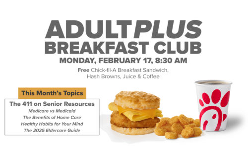 Those 60+ are invited to this month’s AdultPlus Breakfast Club happening Monday, February 17, from 8:30-9:45 AM, in room 116 of the Family Life Center at Victory’s North Lakeland Campus. Enjoy a delicious FREE Chick-fil-A breakfast meal and an incredibly informative session featuring multiple special guests
