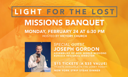Our annual Light for the Lost missions banquet is coming up on Monday, February 24, at 6:30 PM! This unique evening is an opportunity for you to hear a powerful update of what God is doing around the world from guest speaker, Joseph Gordon.