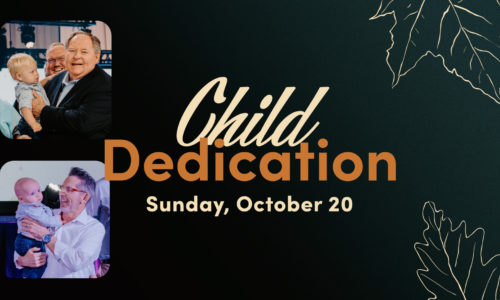 The registration for the Child Dedication service on Sunday, October 20, has closed. Watch the announcements for information about future dedication services!